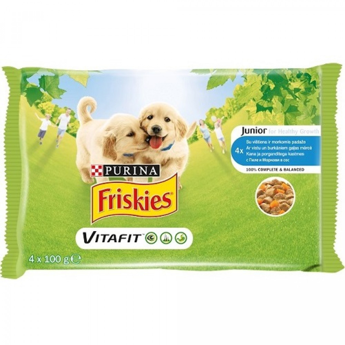Съставки: Месо и животински производни (39%. ), зърнени храни, зеленчуци (включително 0.8% микс от изсушени моркови и грах. еквивалентно на 4% микс от моркови и грах), зеленчукови протеинови екстракти, минерали, производни от зеленчуков произход (включително 0.5% изсушена пулпа отцвекло), масла и мазнини (включително 0.5% слънчогледово олио).