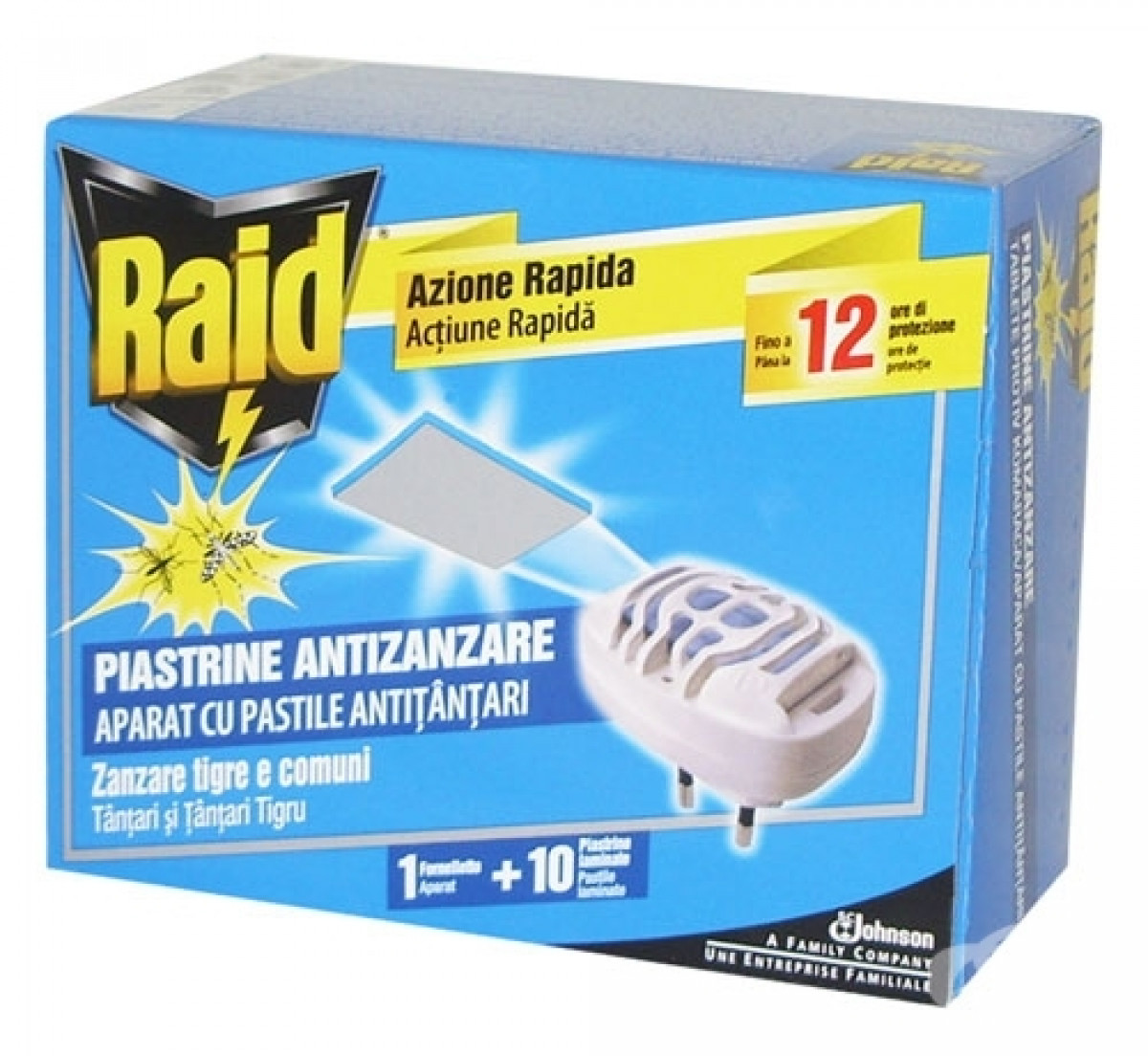 Благодарение на ефективната си формула, Raid устройство с таблетки срещу комари осигурява надеждна защита срещу комари в продължение на цялата нощ.