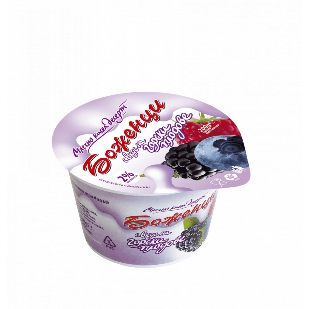Млечнокисел десерт „Боженци” е частично обезмаслено краве мляко, мляко на прах, захар, аромат, натурален оцветител, претърпяло процес на млечно – кисела ферментация под действието на закваска, съдържаща Лактобацилус булгарикус и Стрептококус термофилус.