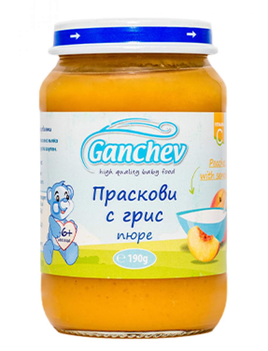 Праскови 18%, грис 4%, обезмаслено мляко на прах 3%, царевично нишесте, захар, витамин С, вода.