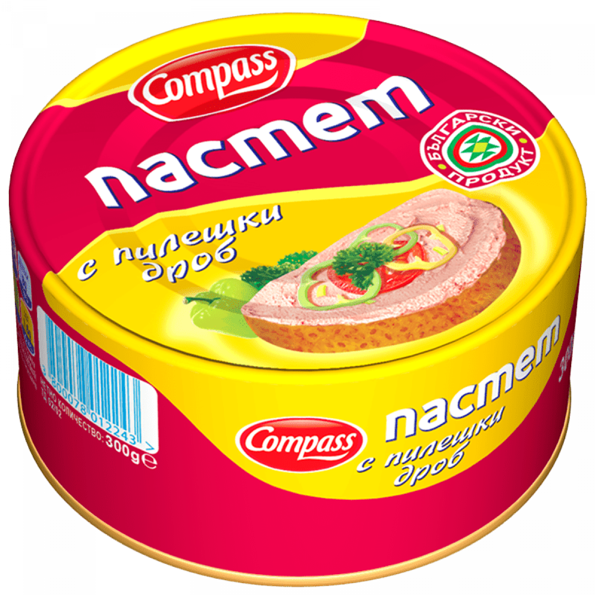 Състав: свински бульон, свинско месо и мазнина, пилешки черен дроб 14%, механично отделено птиче месо, царевично нишесте, растителни фибри, стабилизатор трифосфати, консервант натриев нитрит; захар, червен ферментирал ориз, сол, подправки, подправъчна смес 0,3% (подправки, подправъчни екстракти, горчица (синап), сол, глюкоза, ароматизант, овкусител мононатриев глутамат).