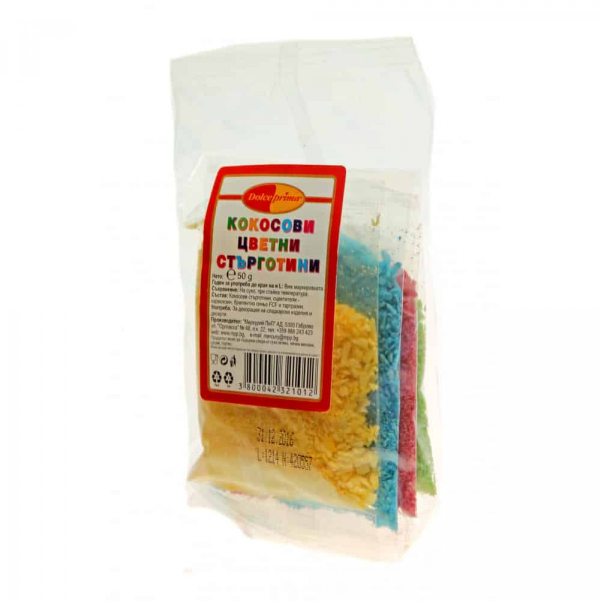 Сладкарска декорация - цветни кокосови стърготини и приятен кокосов аромат.