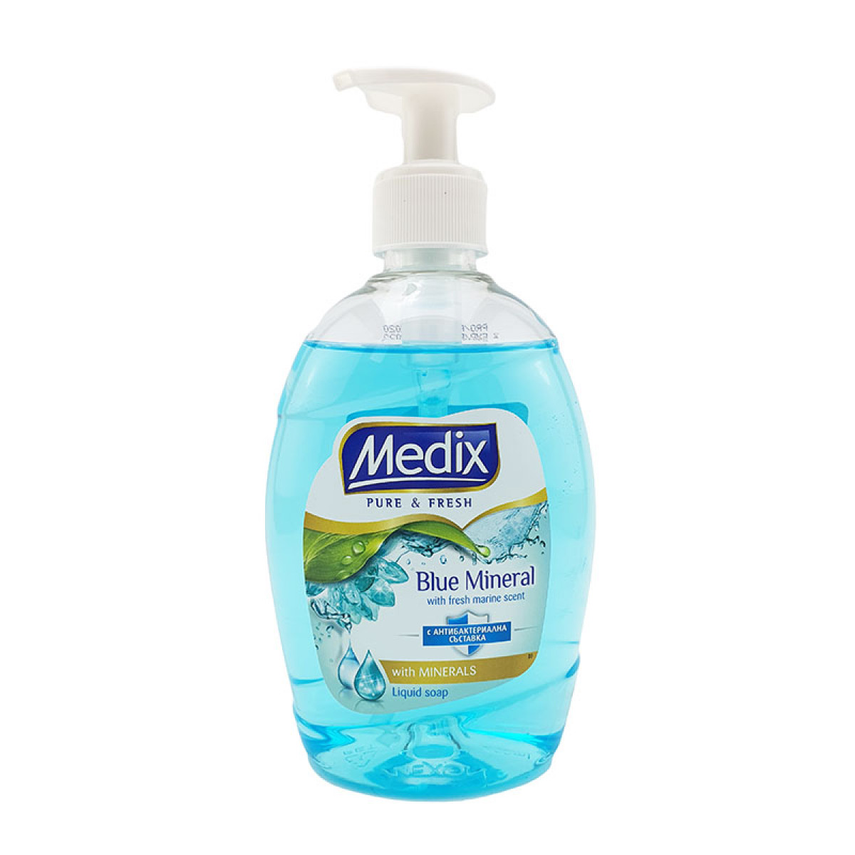 Антибактериален течен сапун Медикс обогатен с минерали и свеж морски аромат.