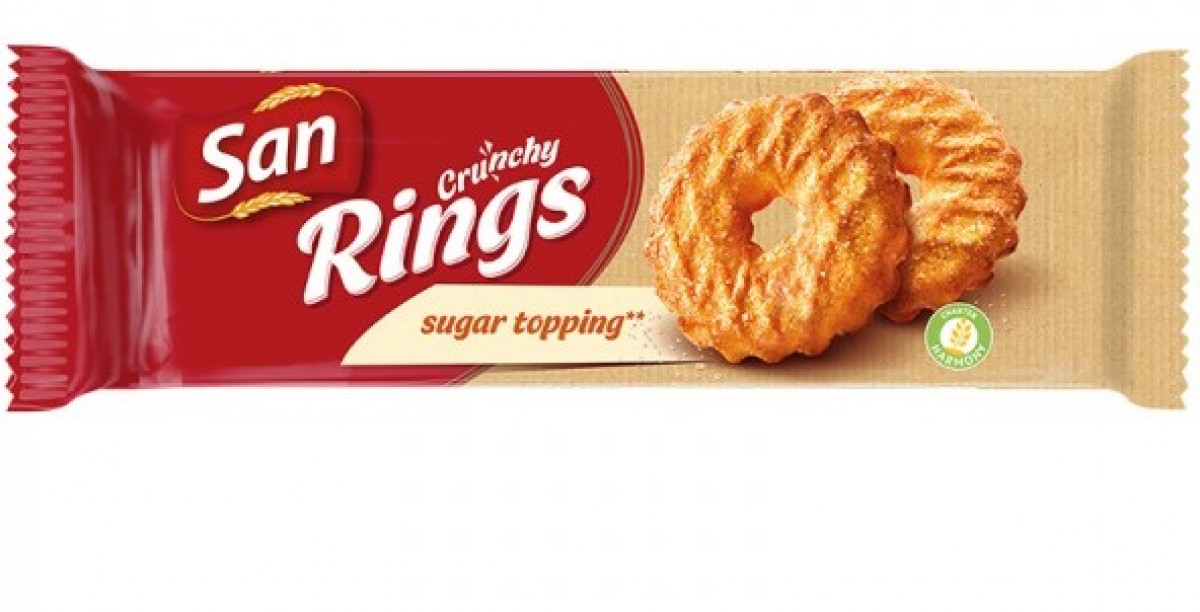 Състав: ПШЕНИЧНО брашно, захар 21,5 %, палмово масло, глюкозо-фруктозен сироп, пълномаслено МЛЯКО на прах, набухватели (амониеви карбонати, натриеви карбонати, дифосфати), ЯЙЦА на прах, сол, емулгатор (E481), ароматизант.