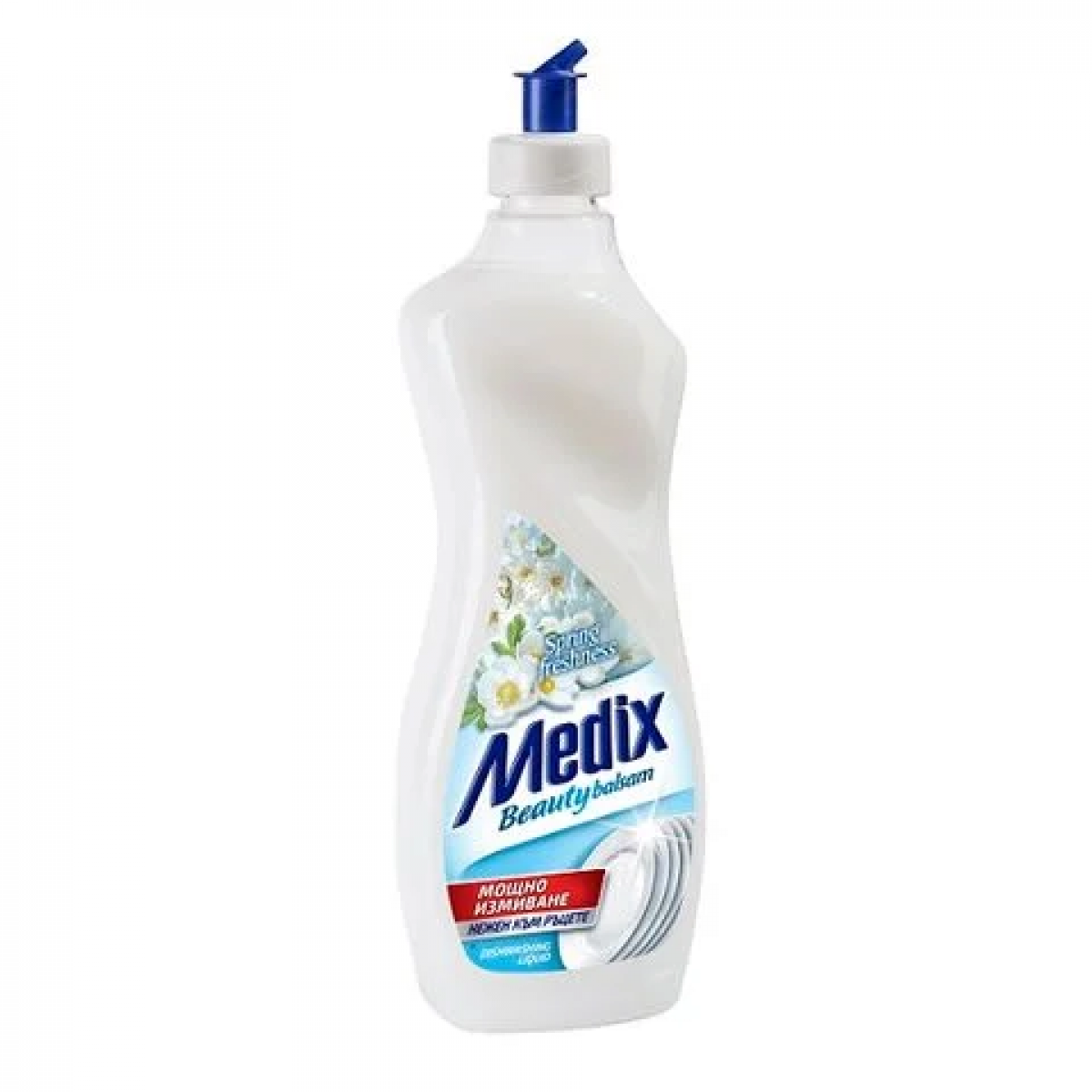 Ултра концентриран препарат за измиване на съдове MEDIX PREMIUM – мощен срещу мазнини и засъхнали остатъци от храна. С балсам, запазващ мекотата на ръцете. Активните съставки и дълготрайна пяна осигуряват ефикасно измиване за блестящи от чистота съдове и прибори.