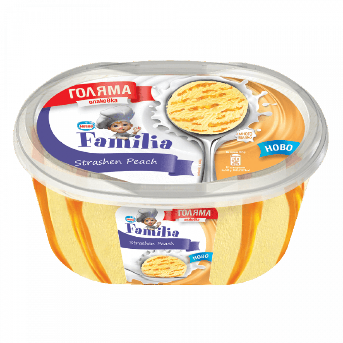 Състав: възстановено сухо обезмаслено мляко, вода, захар, глюкозен сироп, кокосово масло, суроватка на прах (от мляко), обезсолено краве масло (от мляко), сухо обезмаслено мляко, емулгатор (моно- и диглицериди на мастни киселини), стабилизатори (гума гуар, гума локуст бийн, преработени "Euchema" водорасли, гума ксантан, гума арабика), ароматизанти (съдържа ванилин), Може да съдържа : глутен, яйца, соя и ядки.