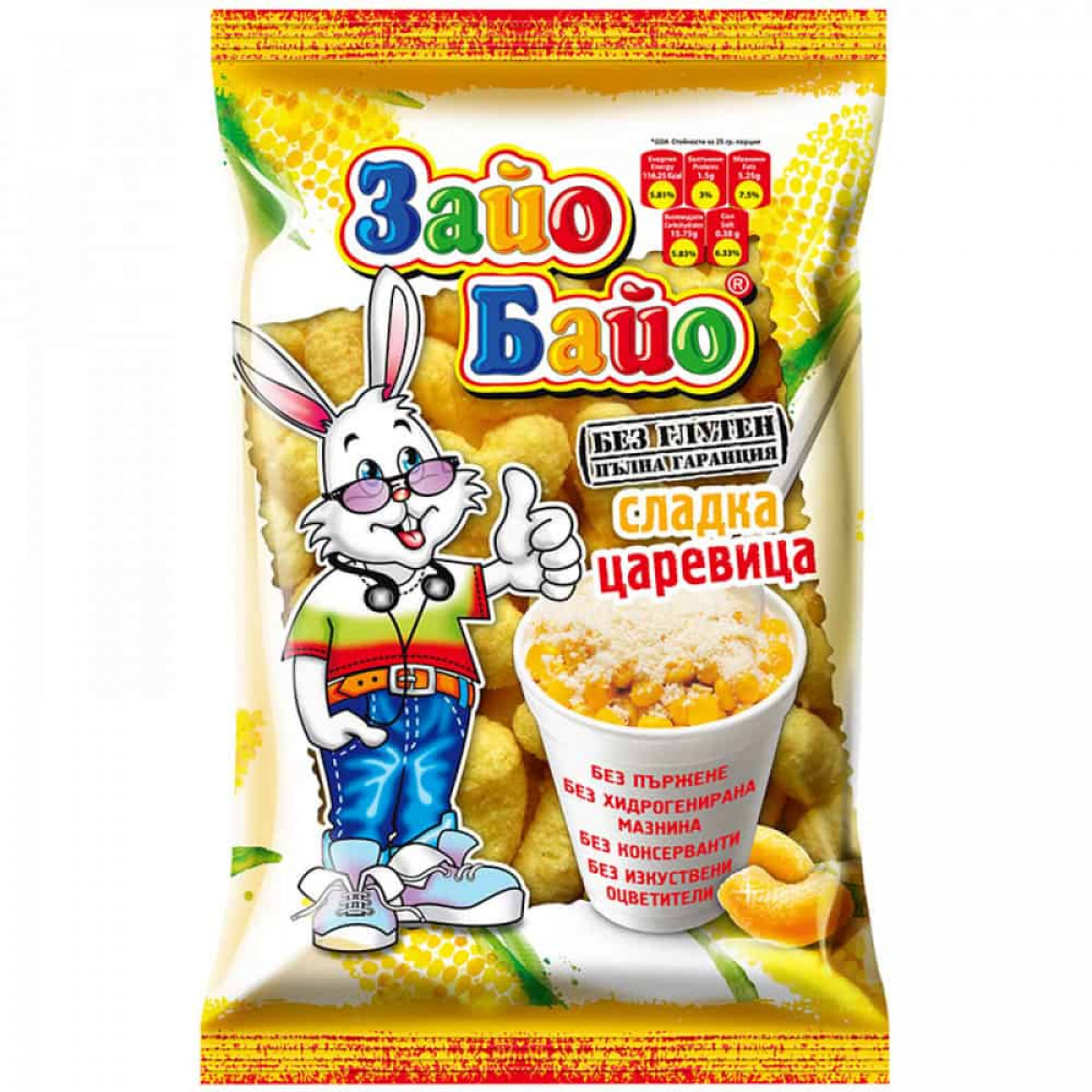 Не съдържа консерванти, няма изкуствени оцветители и се влагат само натурални съставки добити по природосъобразен начин. В технологията на производство няма пържене, защото процеса е сходен с този на изпукването на пуканките. След това се добавя фин слой растителна мазнина, за да могат подправките да се задържат върху продукта. Зайо Байо Сладка Царевица може да со консумира от хора с глутенова непоносимост. Натуралността на продукта е 100% гарантираната без глутен, без ГМО, без консерванти, без пържене и без изкуствени оцветители.