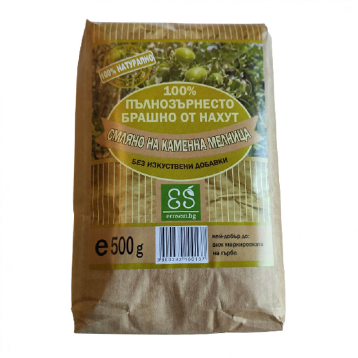 Натурално пълнозърнесто брашно от нахут, смляно на каменна мелница, благодарение на което в зърното се запазват всички витамини, ензими, минерали и фибри, правещи брашното напълно натурално и здравословно.