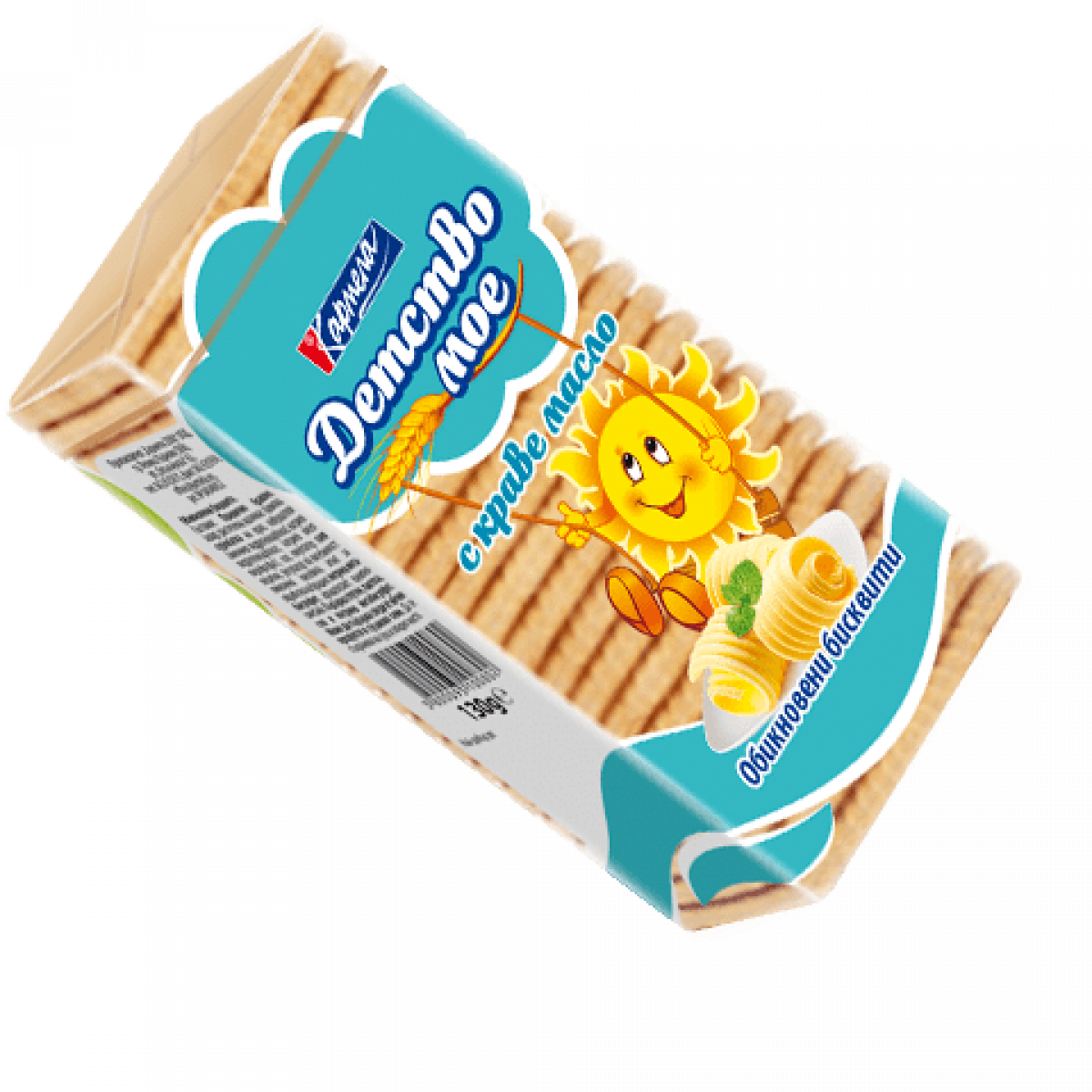 Състав: пшеничено брашно, захар, палмова мазнина, глюкоза, набухватели (амониев бикарбонат, натриев бикарбонат), сол, аромат. Може да съдържа мляко, фъстъци и ядки.