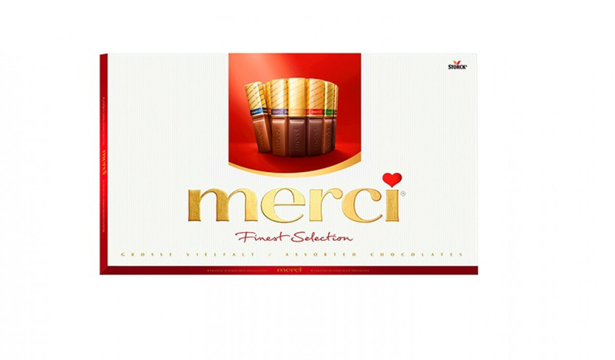 Шоколадови бонбони "Merci" с различни вида шоколадов, нежен вкус и фина текстура.