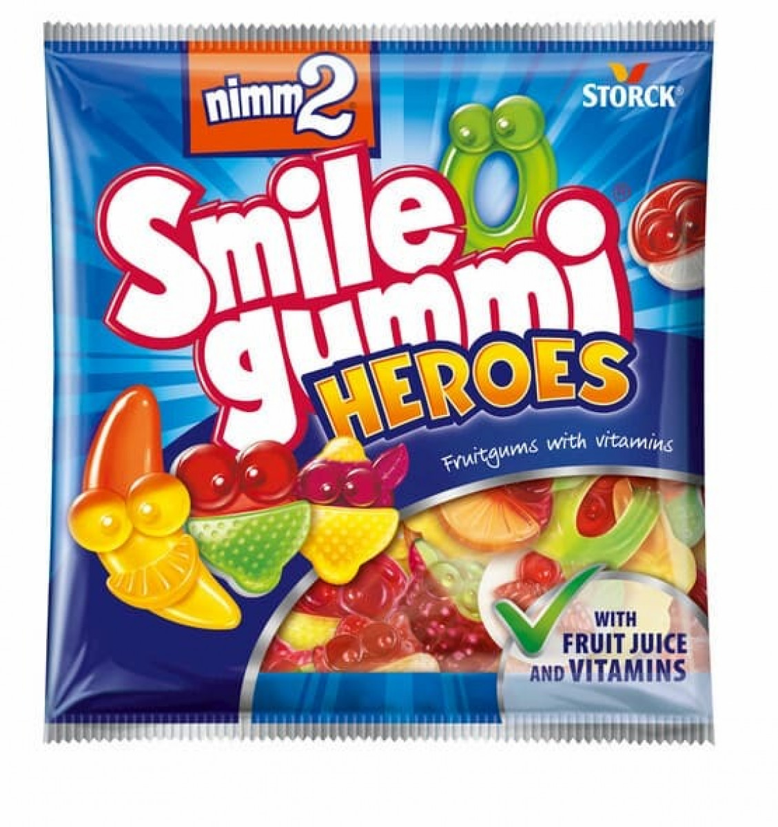 Съставки: глюкозен сироп, захар, желатин, декстроза, плодови сокове от концентрати (2%): ананас, ябълка, ягода, малина, портокал, лимон, киселина: лимонена киселина, концентрат от плодове и растения: бъз, арония, гроздов, черен касис, лимон, портокал, маракуя, манго, ябълка, киви, шафранка (див шафран), спирулина, ароматизант, глазиращ агент: жълт и бял пчелен восък карнауба.