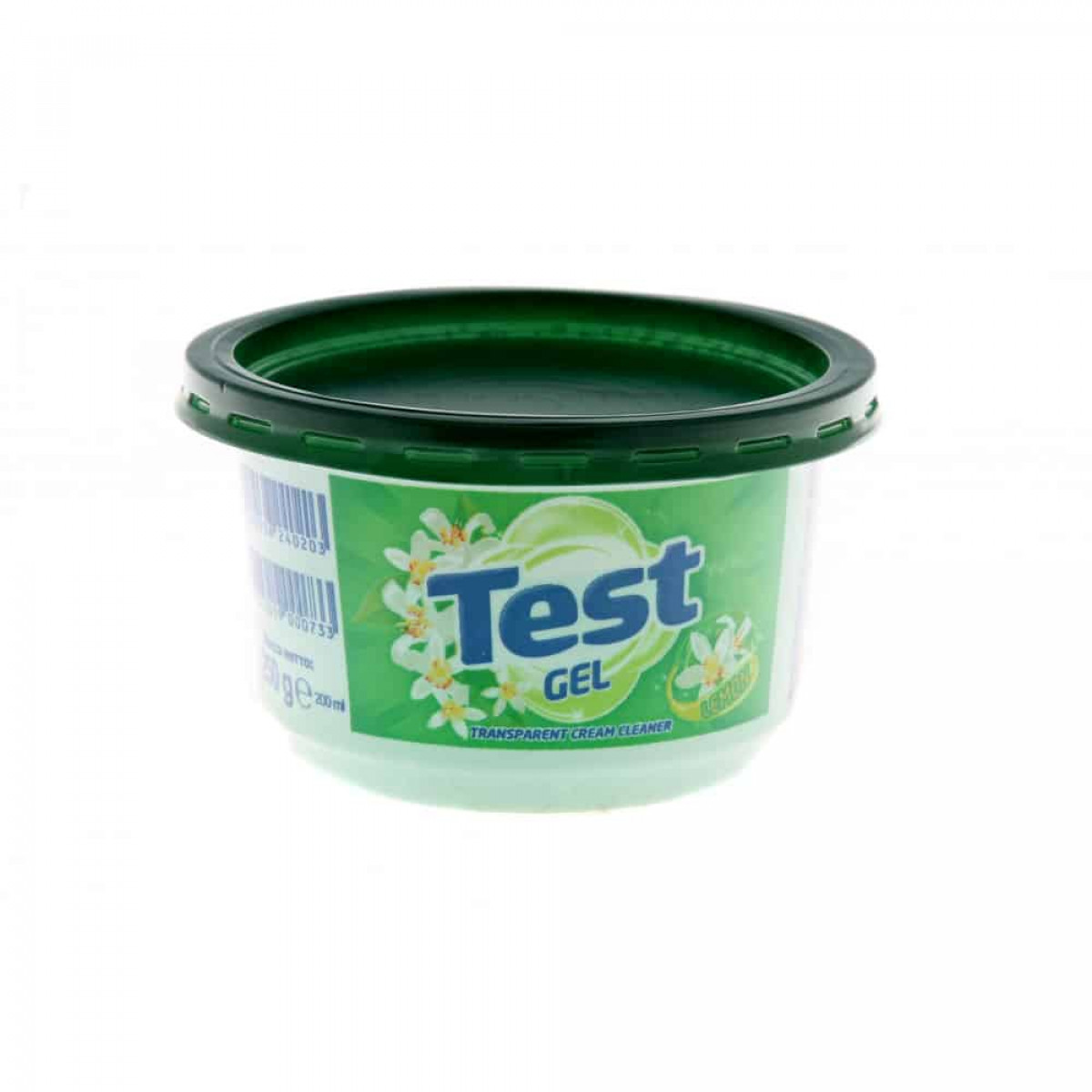 Test Gel гел за почистване на съдове. Концентриран мощен препарат за ръчно измиване на съдове с аромат на свеж лимон.