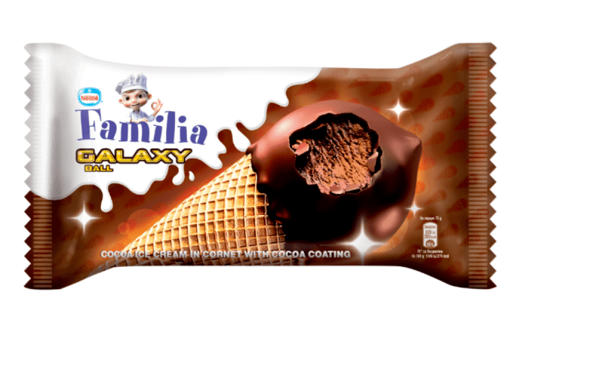 Състав: възстановено обезмаслено мляко, захар, вода, глюкозен сироп, суроватка на прах (от мляко), пшенично брашно, яйца на прах, какаова маса, картофено нишесте, емулгатор (моно- и диглицериди на мастни киселини, слънчогледов лецитин), какаово масло, стабилизатори (гума гуар, гума локуст бийн, сорбитол, преработени "Euchema" водорасли, гума ксантан),  оцветител (карамел (амониев сулфит)), пълномаслено мляко на прах, сухо обезмаслено мляко, ароматизанти, набухвател (динатриев дифосфат, натриев хидроген карбонат), краве масло (от мляко), сол, яйчен жълтък на прах, декстроза. Може да съдържа соя и ядки.
