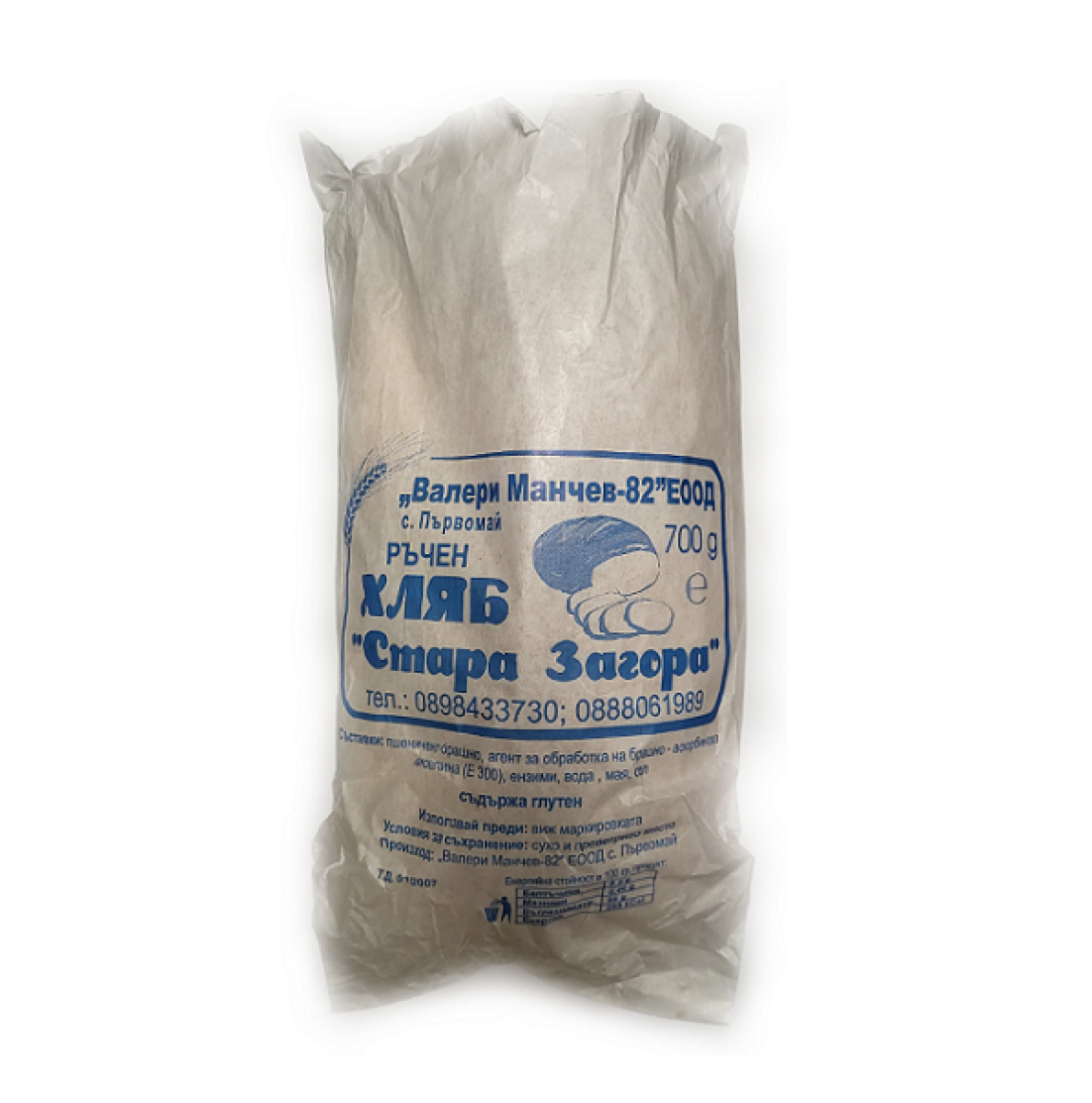 Състав: брашно пшенично бяло, вода, мая хлебна, сол.