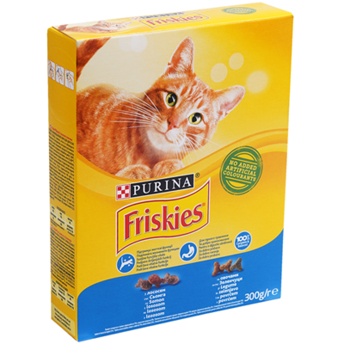 Състав: Зърнени култури, Месо и месни субпродукти, Протеинови екстракти от зеленчуци, Продукти с растителен произход, Масла и мазнини, Риба и рибни субпродукти (от които 3% риба тон и 1% сьомга в гранули с форма на куб*), Минерали, мая, Зеленчуци (0.6% дехидратирани зеленчуци, еквивалентно на 4% рехидратирани зеленчуци в гранули с форма на диск**), . *Общо съдържание в продукта: 2.4% риба тон и 0.8% сьомга **Общо съдържание в продукта: 0.6% рехидратирани зеленчуци Типичен състав на продукта: гранули с форма на куб 80%; гранули с форма на диск 20%.