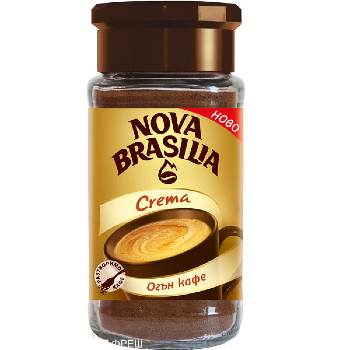 Nova Brasilia Crema е предложение за любители на разтворимо кафе, които предпочитат да се насладят на богат и наситен вкус и на напитка с неустоим плътен каймак.
