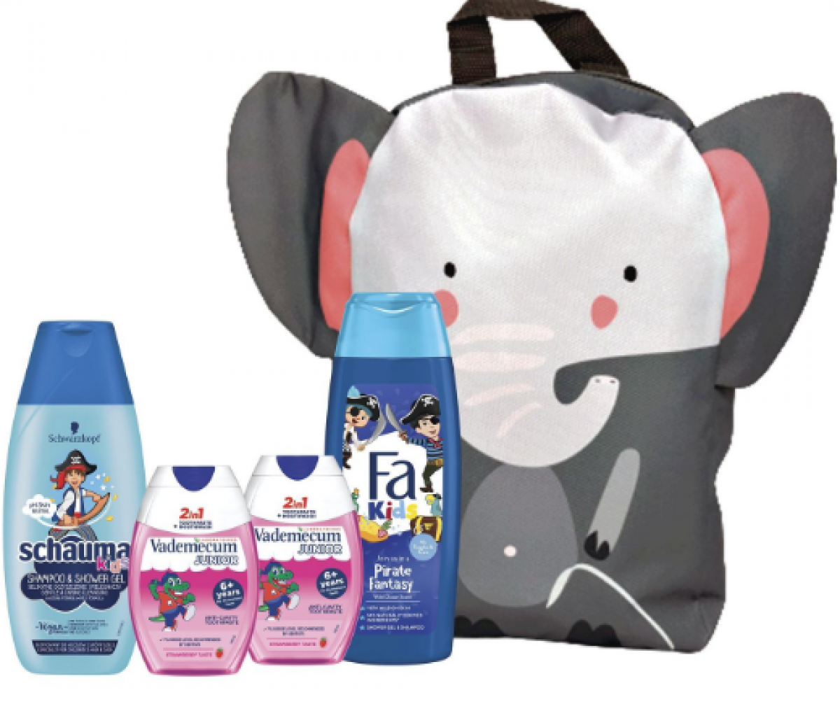Комплектът съдържа: Шампоан, 250 ml + Душ гел, 250 ml + Паста за зъби, 75 ml (2 броя) + Четка за зъби + Несесер.
